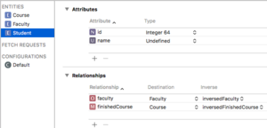 If you set the relationship like what you do in Student class, it is not acceptable in core-data. The reason is for each relationship, we must have its corresponding inverse relationship. So this is what we usually do.