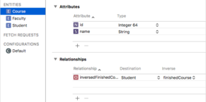 At last, make sure you select the relationship type in the right hand side panel. In the example, the faulty is To one, the finishedCourse is To many.