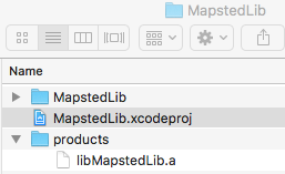 Now if you see the left side (project navigation panel), there is a Products folder and under it you can see the generated .a file. Now right click the library file and open in finder. You can see the location for the .a file is under the Xcode DerivedData path. Copy it out into the library folder itself. You can create a products folder like what I did.