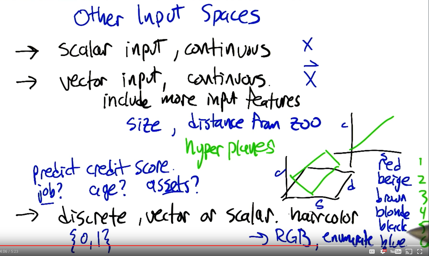 For input, what we talked before are scalar input, continuous. That is exactly the x. What about the vector input? We can include more input features, but how do we do that?