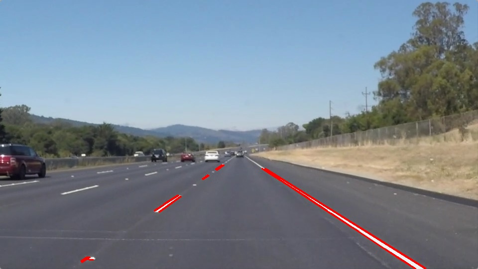 The output should look something like above after detecting line segments, and the goal is to connect/average/extrapolate line segments to get output like below.